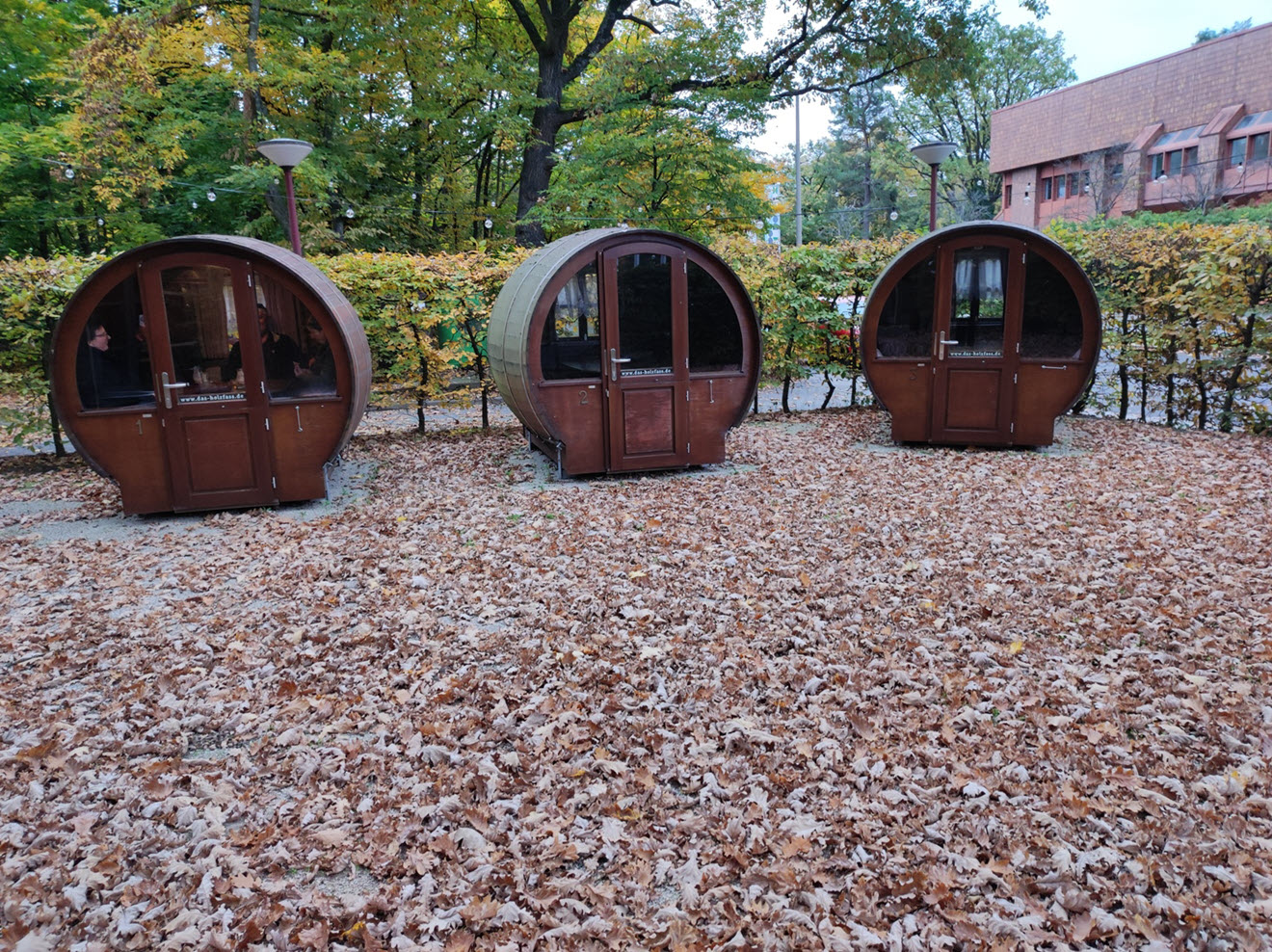 Natürlich abhörsicher, im linken Bierfass des Hotels.